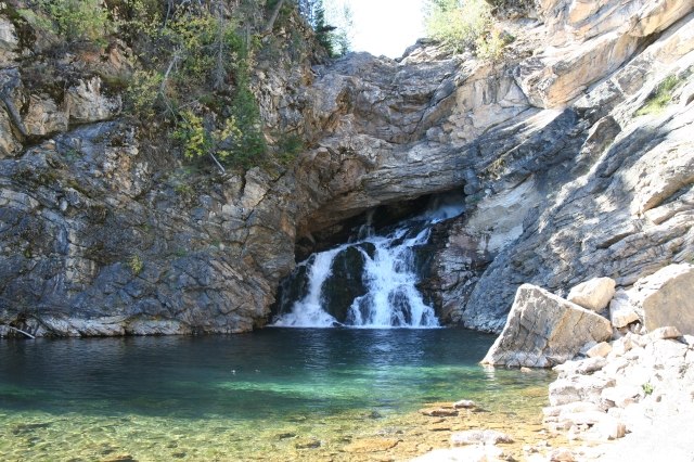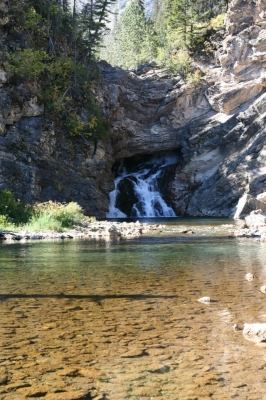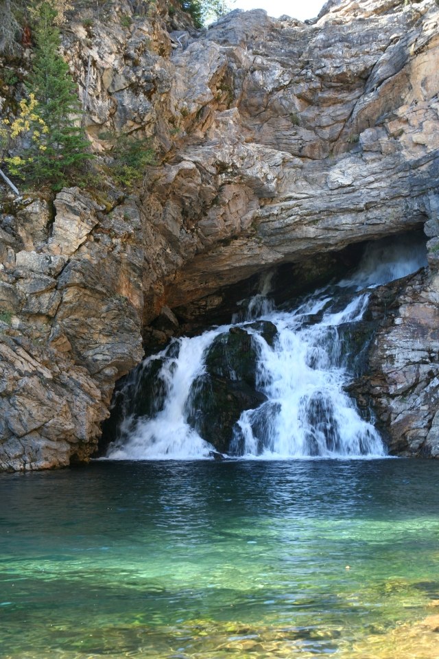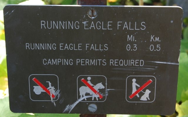 The nature trail hike here was Running Eagle Falls–just 0.3 mile, but to a really unique sight. The falls come down from above behind the rock, perhaps accounting for their other name, “Trick Falls.” Again the water was clear blue-green and just beautiful.