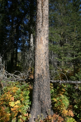 If we needed a reminder that we were in bear country, the bark on the tree we saw on the way out reminded us. It showed a clear paw scratch. Whew!